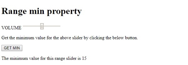 讓我們看一個輸入範圍 min 屬性的示例 −