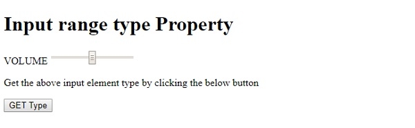 然後我們建立了一個按鈕“GET Type”,當用戶點選時,它將執行 rangeType() 方法 −