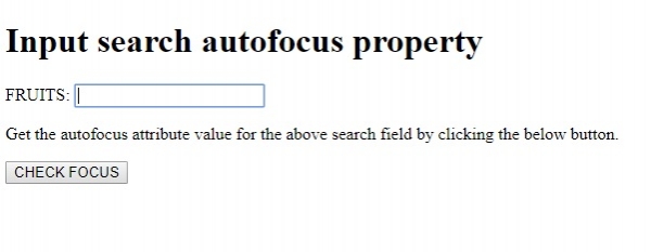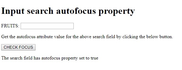 我們來看一個輸入搜尋 autofocus 屬性的示例 −