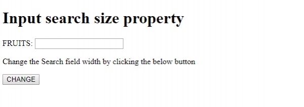 HTML DOM 輸入搜尋 size 屬性用於設定或返回輸入搜尋欄位的 size 屬性值。它用於定義以字元為單位的搜尋欄位寬度。預設寬度為 20 個字元。