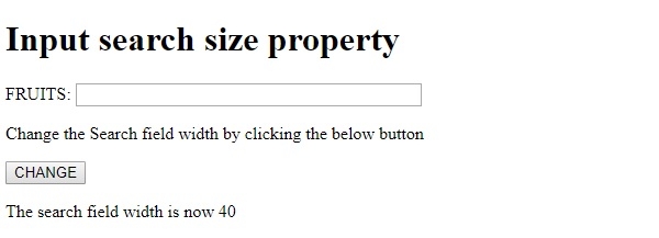 document.getElementById("Sample").innerHTML="The search field width is now "+ s;