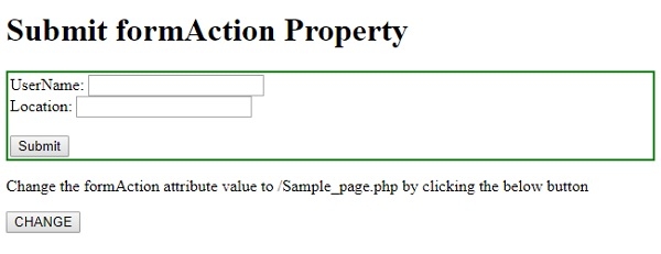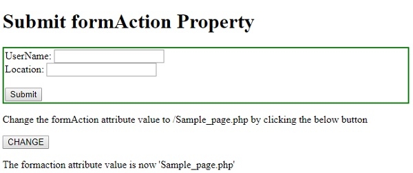 HTML DOM 提交 formAction 屬性用於設定或獲取該表單的 formaction 屬性值。formaction 屬性指定單擊提交按鈕後要向其傳送資料的 URL。formAction 屬性值將覆蓋與 <form> 元素關聯的 action 屬性值。