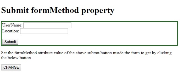 讓我們看一個 Submit formMethod 屬性的示例 −