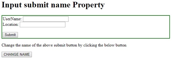 HTML DOM Input Submit name 屬性用於設定或返回提交按鈕的 name 屬性。name 屬性有助於在將表單資料提交到伺服器後識別該資料。