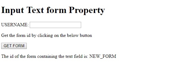 HTML DOM 輸入文字表單屬性用於返回包含輸入文字域的表單引用。如果輸入文字域不在表單中,它將返回 NULL。該屬性是隻讀的。