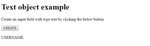 HTML DOM 輸入文字物件與型別為“text”的<input> 元素相關聯。我們可以使用createElement() 和getElementById() 方法分別建立和訪問型別為文字的輸入元素。