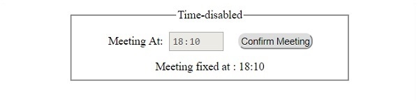 divDisplay.textContent = 'Meeting fixed at : '+inputTime.value;