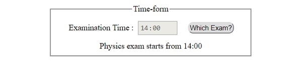 讓我們來看一下 輸入時間 form 屬性的示例 −