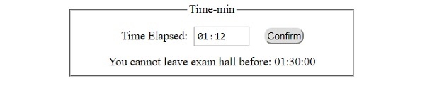 divDisplay.textContent = 'You cannot leave exam hall before: '+inputTime.min;