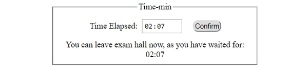 divDisplay.textContent = 'You can leave exam hall now, as you have waited for: '+inputTime.value;