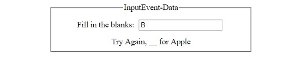HTML DOM InputEvent data 屬性返回使用事件輸入字元對應的字串。