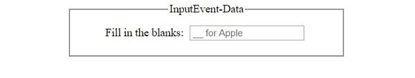 <input type="text" id="textSelect" placeholder="__ for Apple" oninput="getEventData(event)">