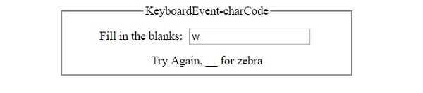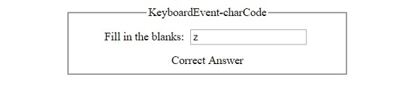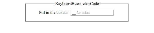 讓我們來看一個 KeyboardEvent charCode 屬性的示例 −