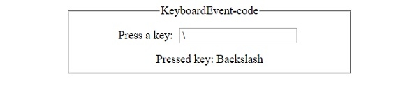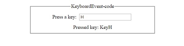 讓我們看一個針對 KeyboardEvent code 屬性的示例 −