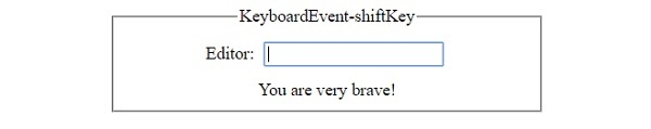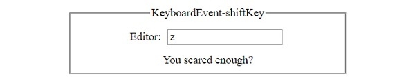 讓我們看一個 KeyboardEvent shiftKey 屬性的示例:
