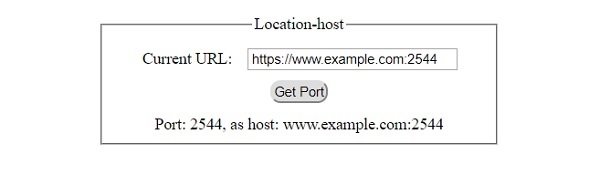divDisplay.textContent = 'Port: '+location.host.split(":")[1]+', as host: '+location.host;
