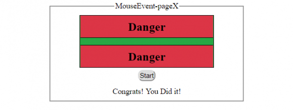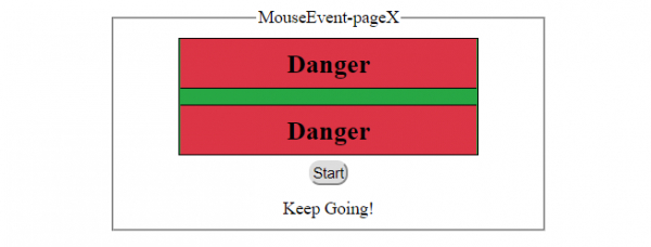 讓我們看一個 MouseEvent pageX 屬性的示例 −