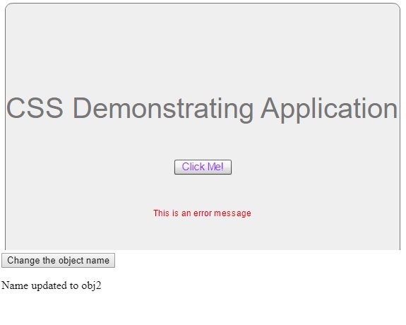 document.getElementById("demo").innerHTML = "Name updated to obj2";