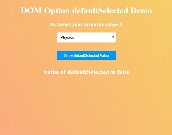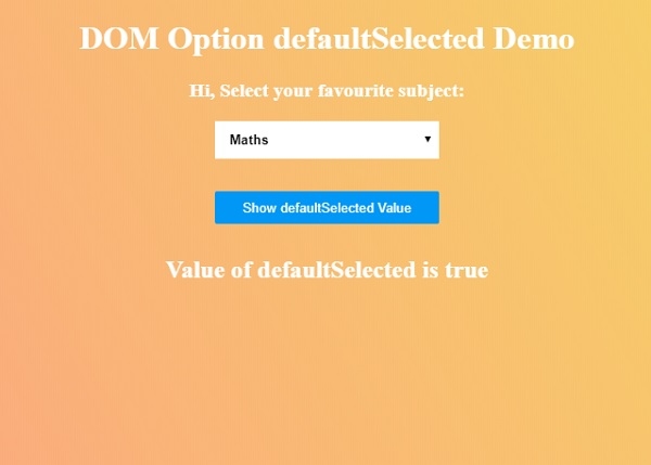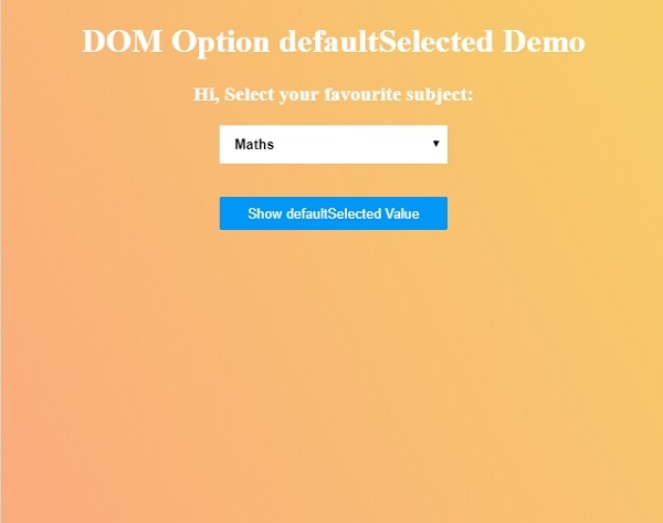 var msg = document.querySelector(".show").innerHTML="Value of defaultSelected is " +