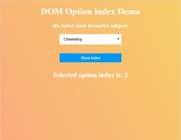 讓我們瞭解 HTML 選項 index 屬性的一個示例 −