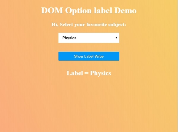 <h1>DOM Option label Demo</h1>