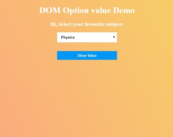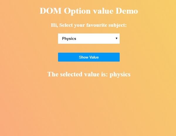 我們來看一個 HTML DOM option value 屬性的示例 −