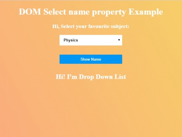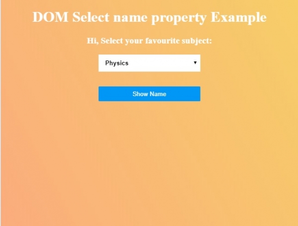 讓我們看看 HTML DOM select name 屬性的示例 −