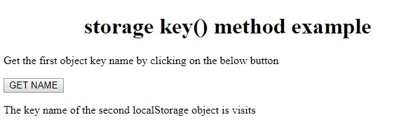 HTML DOM Storage key() 方法用於返回儲存物件中特定索引處的鍵名。 該索引作為 key() 方法的引數傳遞。 儲存物件可以是會話物件或 localStorage 物件。