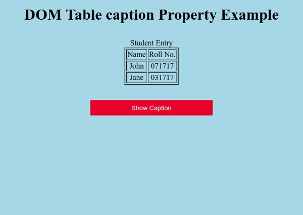 讓我們來看一個 HTML DOM 表 createCaption() 方法示例 −