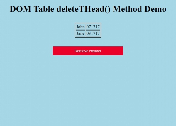 <h1>DOM Table deleteTHead() Method Demo</h1>