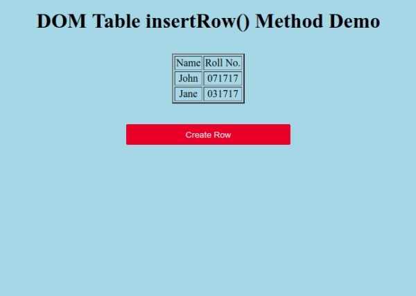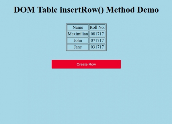 <h1>DOM Table insertRow() Method Demo</h1>