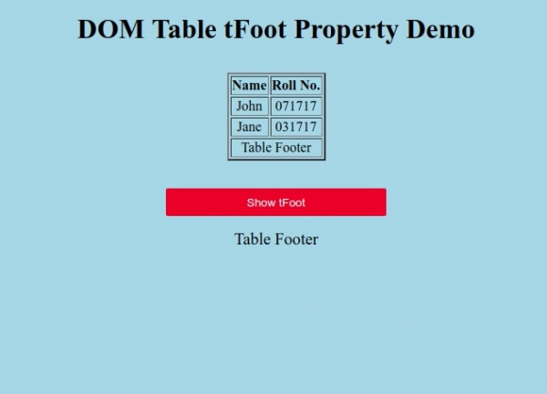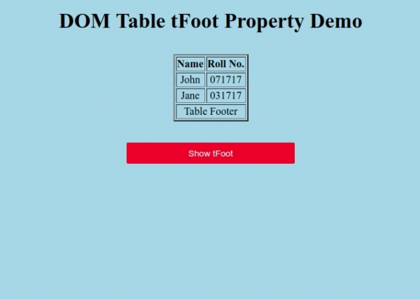 看一個 HTML DOM table tFoot 屬性的示例 −