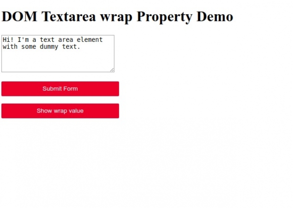 document.querySelector('.show').innerHTML = "The value of wrap attribute is " + document.querySelector("textarea").wrap;