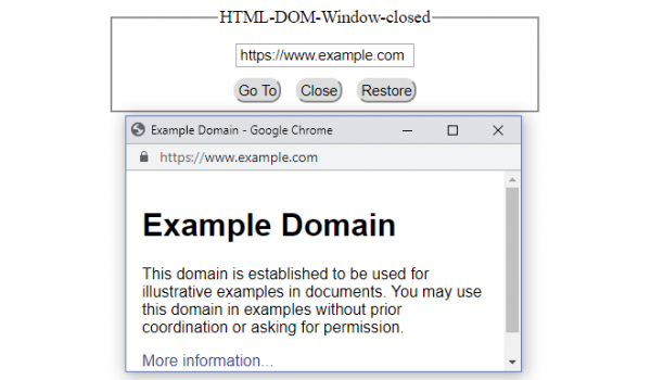 我們來看一個HTML DOM視窗closed屬性的示例 −