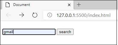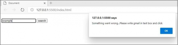 在單擊搜尋按鈕後,您將收到以下輸出中的提醒訊息 −