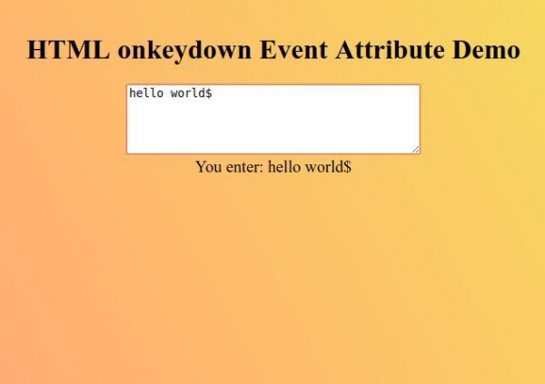 <h1>HTML onkeydown Event Attribute Demo</h1>