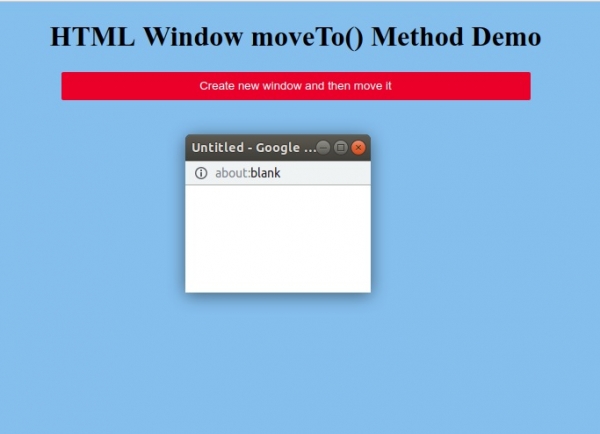 點選“建立新視窗,然後移動它”按鈕以生成一個新視窗,然後使用 moveTo() 方法移動該視窗−
