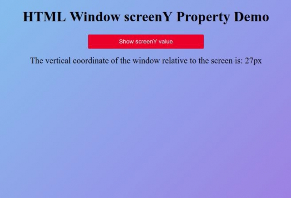 讓我們看一個 HTML 視窗 screenY 屬性的示例 −