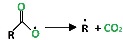 形成的羧基自由基發生**脫羧**,生成烷基自由基和二氧化碳氣體。