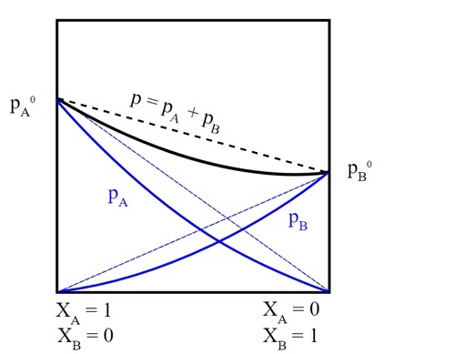 $$\mathrm{P_{r}\:=\:X_{A}\:P_{A}^{0}\:+\:X_{B}\:P_{B}^{0}}$$