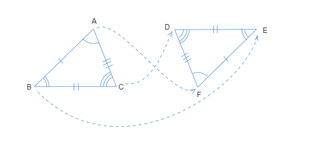 如給定三角形ABC ≅ 三角形FED。讓我們畫出三角形ABC和三角形FED。