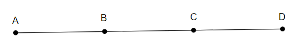 \( \mathrm{B} \)是\( \overline{\mathrm{AC}} \)的中點,並且\( \mathrm{C} \)是\( \overline{\mathrm{BD}} \)的中點,其中\( \mathrm{A}, \mathrm{B}, \mathrm{C}, \mathrm{D} \)位於一條直線上。