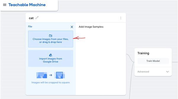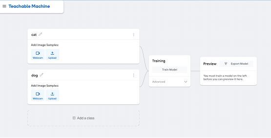 下一步,我們將建立與我們的分類相關的不同類別。我們將必須為類別新增名稱並提供與該類別相關的影像。例如:我們想要建立“貓”類別,因此我們將提供貓的影像,類似地,對於“狗”類別,我們將提供與狗相關的影像。