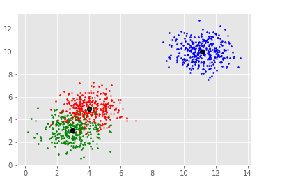 [[ 3.05250924 3.03734994 1.06159541] [ 3.92913017 4.99956874 4.86668482] [10.99127523 10.02361122 10.00084718]] Estimated clusters: 3