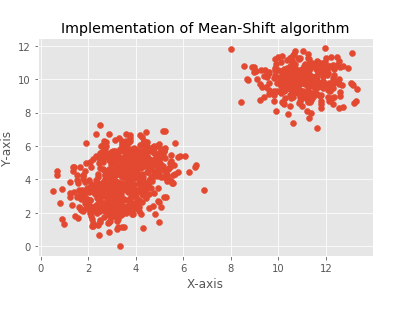 plt.title("Implementation of Mean-Shift algorithm")