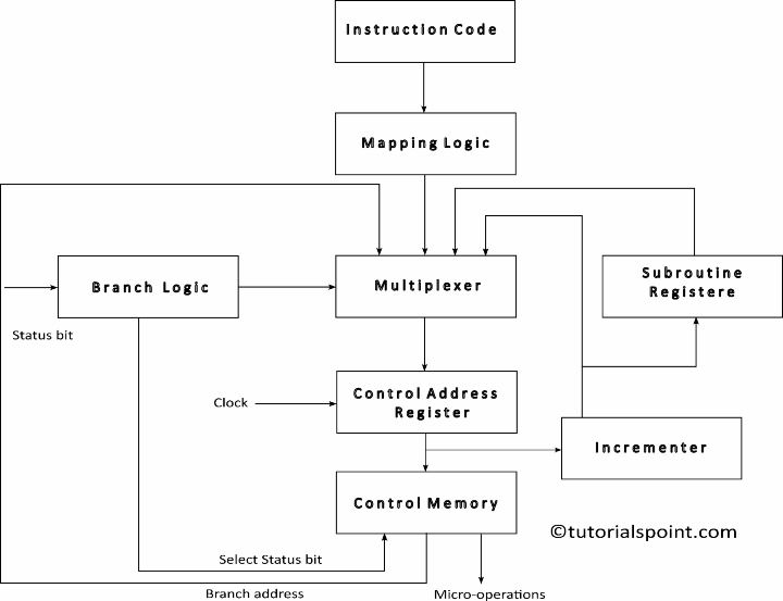 微指令按順序儲存在控制儲存器中。序列中第一條微指令的地址作為 PC 的初始化點。序列控制器生成下一條要執行的微指令的地址。定時電路確保微指令按正確的順序執行。