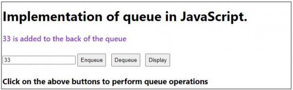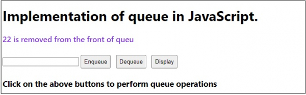 <h3>Click on the above buttons to perform queue operations</h3>