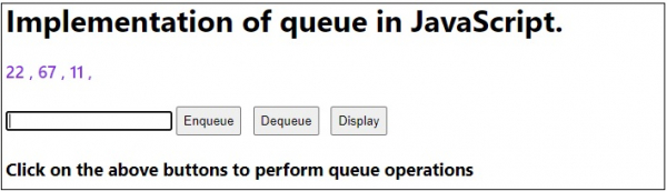 <h1>Implementation of queue in JavaScript.</h1>
