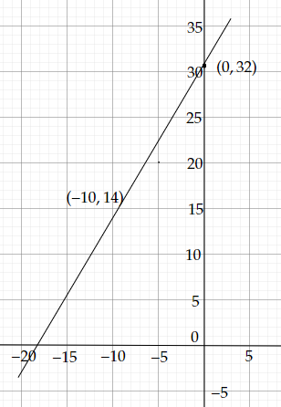 $(0, 32)$ 和 $(-10, 14)$ 是方程$F=(\frac{9}{5})C+32$的兩個解。