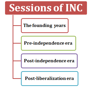 INC的所有會議被分為四個不同的部分,即建國時期、獨立前時期、獨立後時期和自由化後時期。